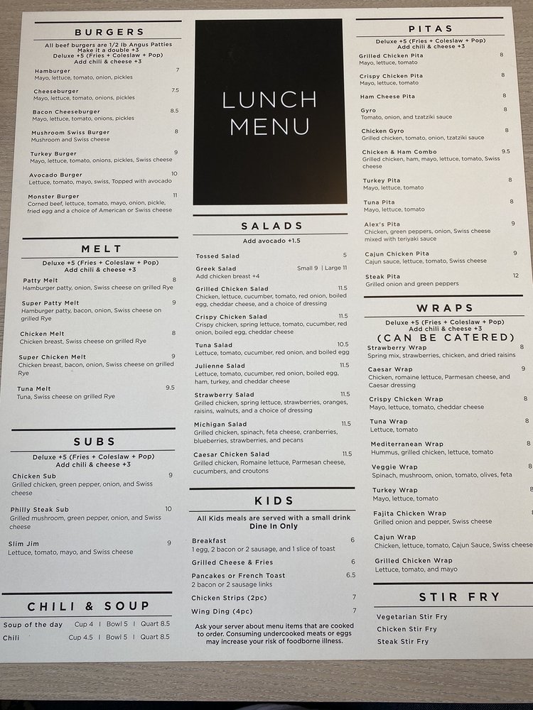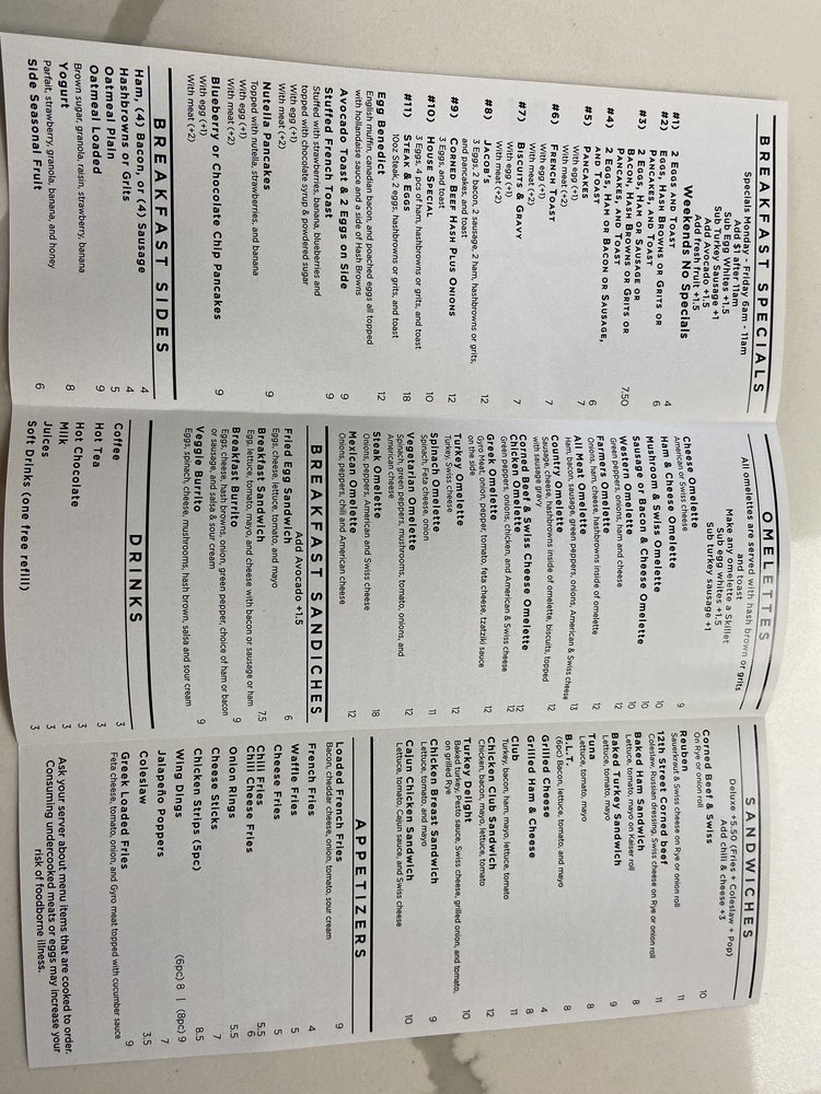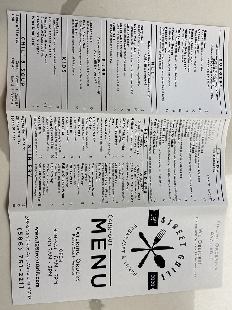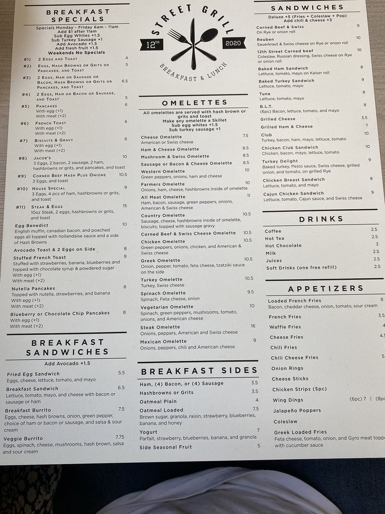 12th Street Grill Menu